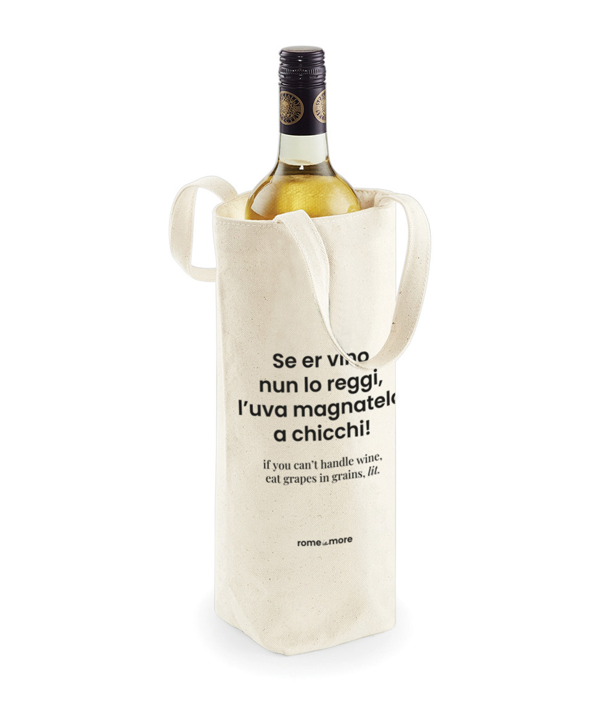Pratico, leggero, e pronto a diventà il protagonista di ogni cena. Perfetto per portare vino, regalare bottiglie o far capì che con te non se scherza, soprattutto dopocena.